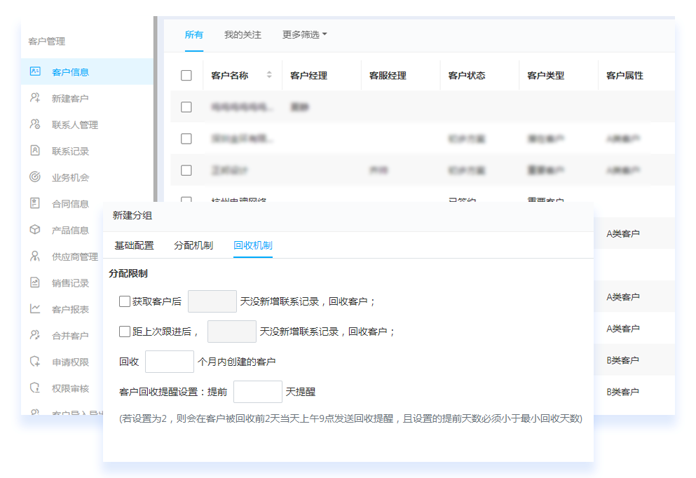 当然,回收不是目的,及时跟进才是目的。回收之前,可设置提醒功能,让销售提前知悉并及时跟进,避免资源被收回。