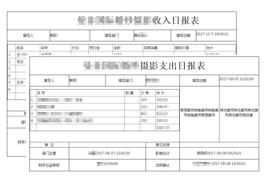 山阳县艺美商贸有限公司是一家专业设计、生产、销售纸制礼品包装盒、瓦楞纸包装箱的企业。借助e-office系统,建立了一套以日为单位的【收入/支出管控体系】,以掌握每日资金动态。