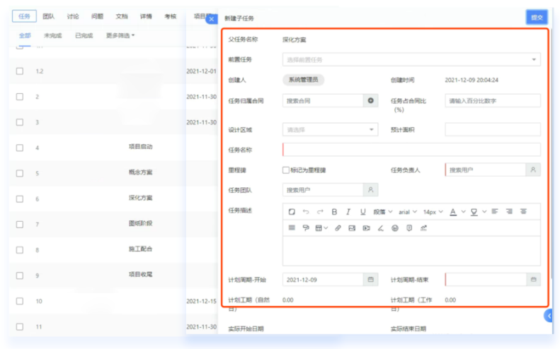 通过OA系统,项目负责人可以围绕项目细分主任务,主任务负责人又可以进一步细分子任务。通过将大的目标层层细分,将责任落实到人,明确时间节点,令整个项目的推动更加有序。
